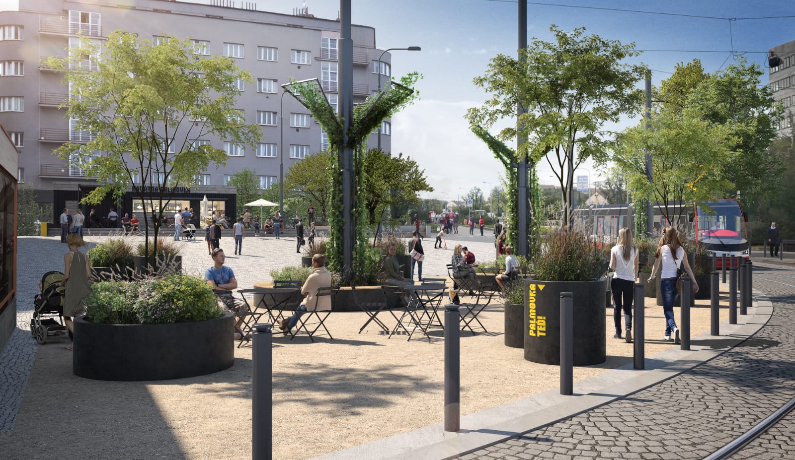 Palmovka se v budoucnu výrazně promění. Vedení Prahy 8 připravuje prostupné a přehledné řešení křižovatky. Vyvýšené betonové bariéry obklopující tramvajovou tepnu konečně zmizí, nahradí je nový povrch, zeleň a posezení.
